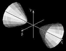 и двухполостных гиперболоидов, ориентированных вдоль оси X.